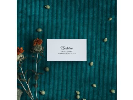 Pozvite svojich hostí na svadobnú hostinu štýlovo a elegantne s našimi personalizovanými pozvánkami k svadobnému stolu. Tieto pozvánky poskytujú vašim blízkym všetky dôležité informácie o svadobnej hostine. Môžu obsahovať podrobnosti ako miesto, čas svadobnej hostiny, dress code a ďalšie špecifiká ako darčeky a parkovanie, aby sa vaši najbližší mohli vhodne pripraviť a zúčastniť vašej svadby.